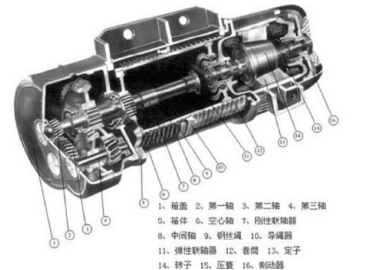 電動葫蘆有起重和行走兩大功能,而起重部分便是電動葫蘆起吊重物的關(guān)鍵部位。當(dāng)操作人員按動電動葫蘆的開始按鈕后,電機(jī)便將電能傳遞給一端的錐形轉(zhuǎn)子電動機(jī),電動機(jī)再通過花鍵套和傳動軸將動力傳遞到另一端的減速機(jī),減速機(jī)經(jīng)過減速的動力,再傳遞到中間的鋼絲繩卷筒上,之后鋼絲繩卷筒帶動鋼絲繩和吊鉤以及吊鉤底部的重物進(jìn)行上升、下降操作。